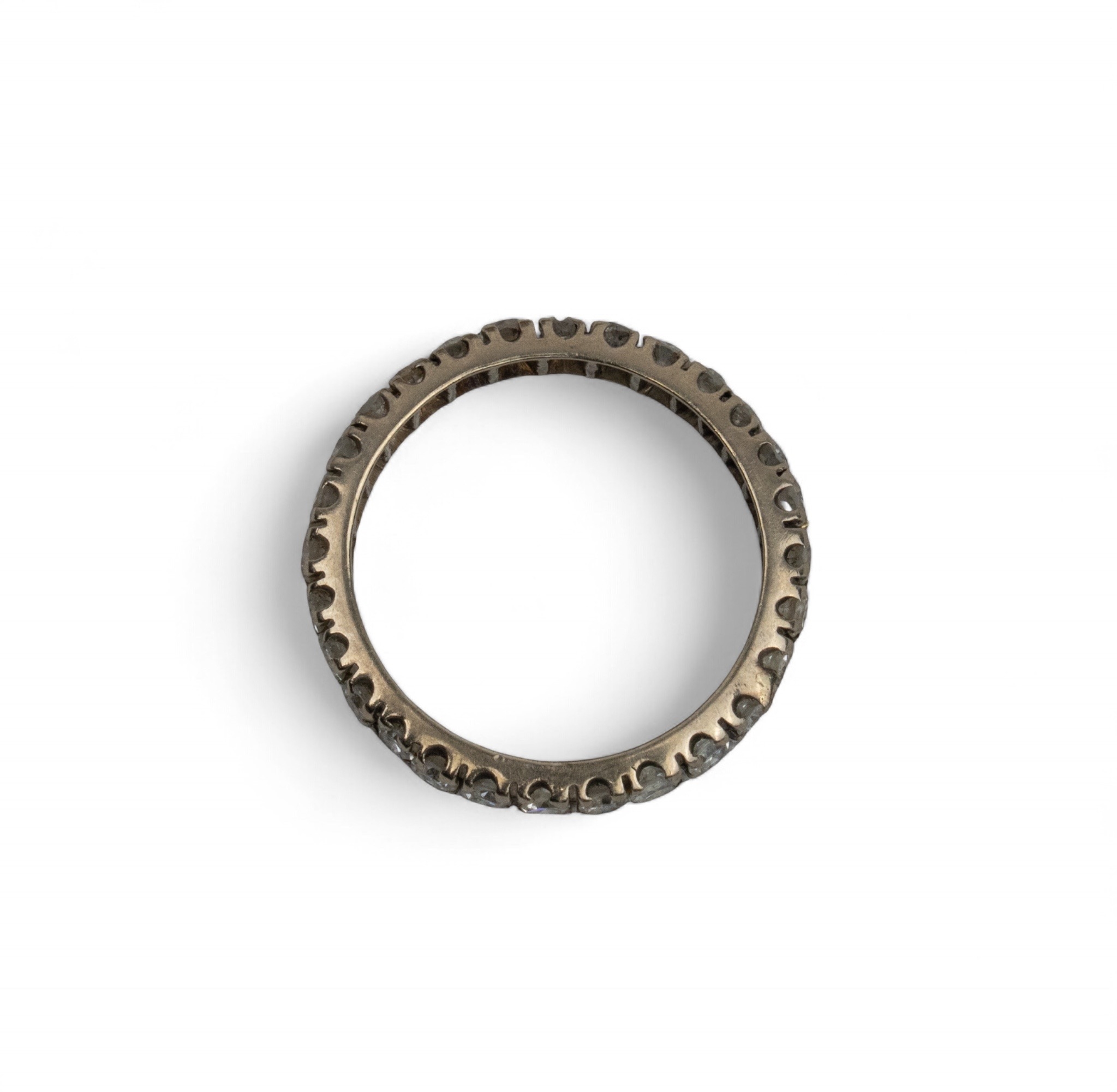 A diamond eternity ring, set throughout with circular-cut diamonds. Mounted in white gold.