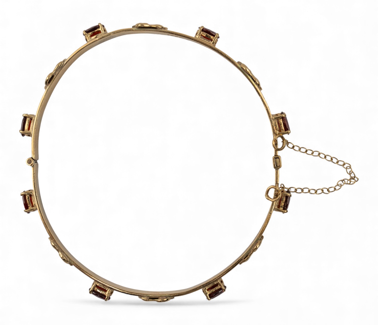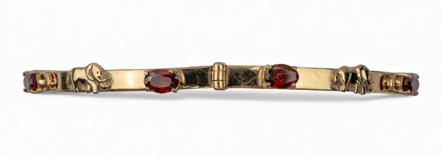 A 9 carat gold and garnet elephant motif bangle