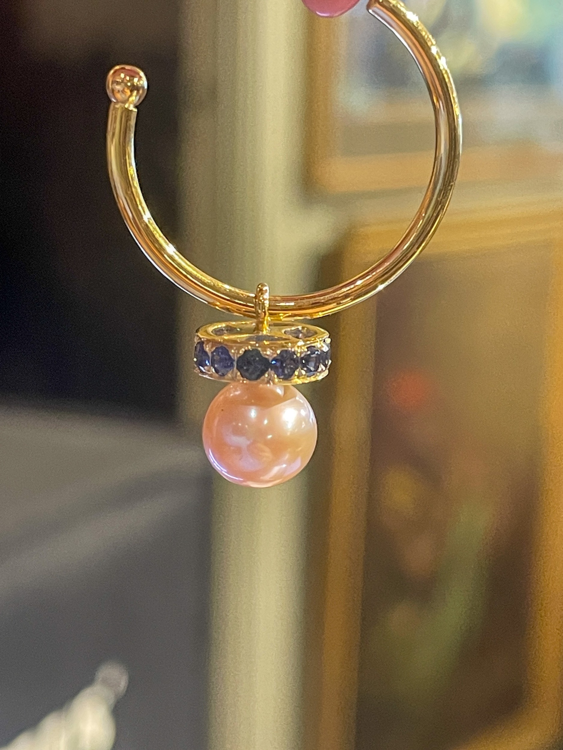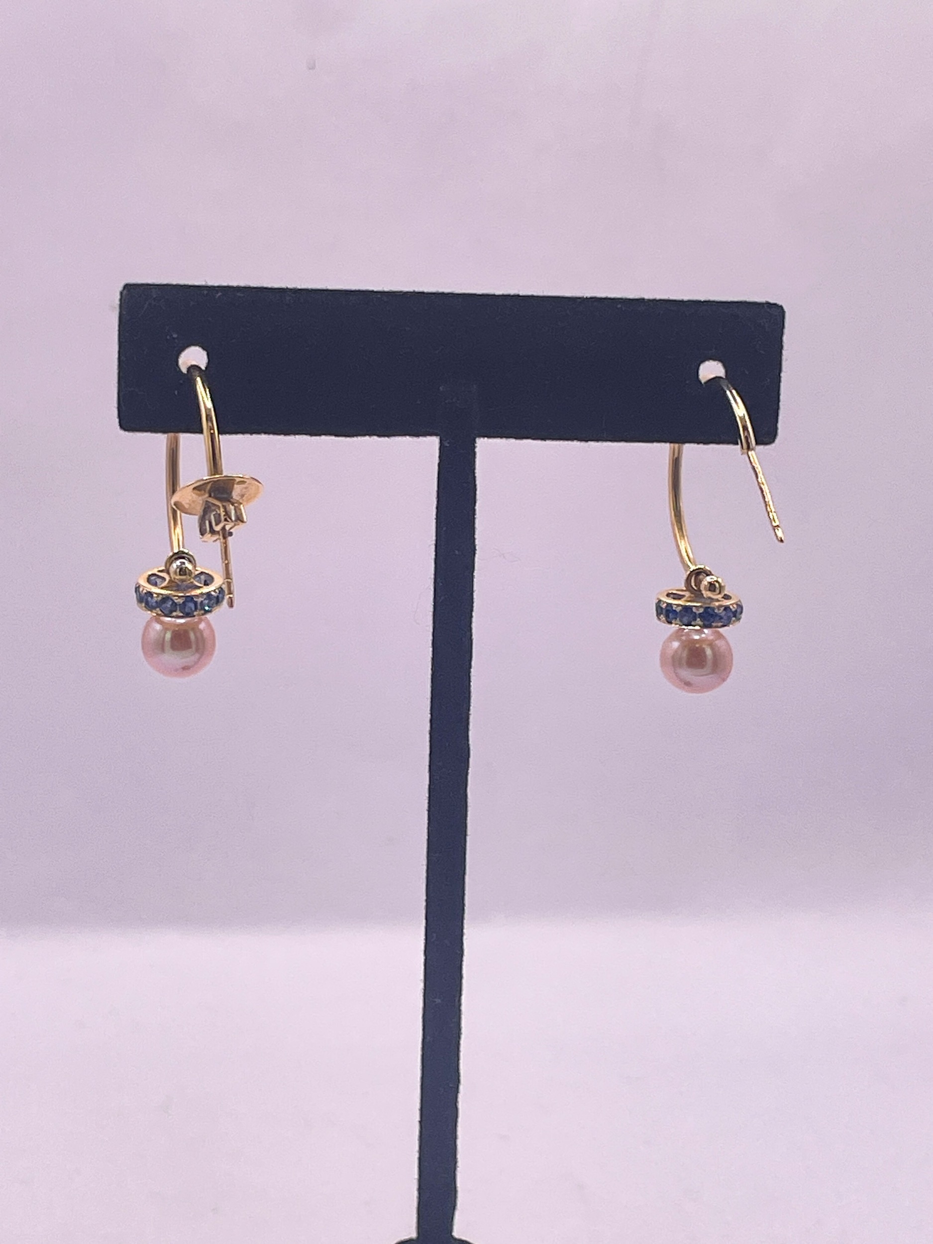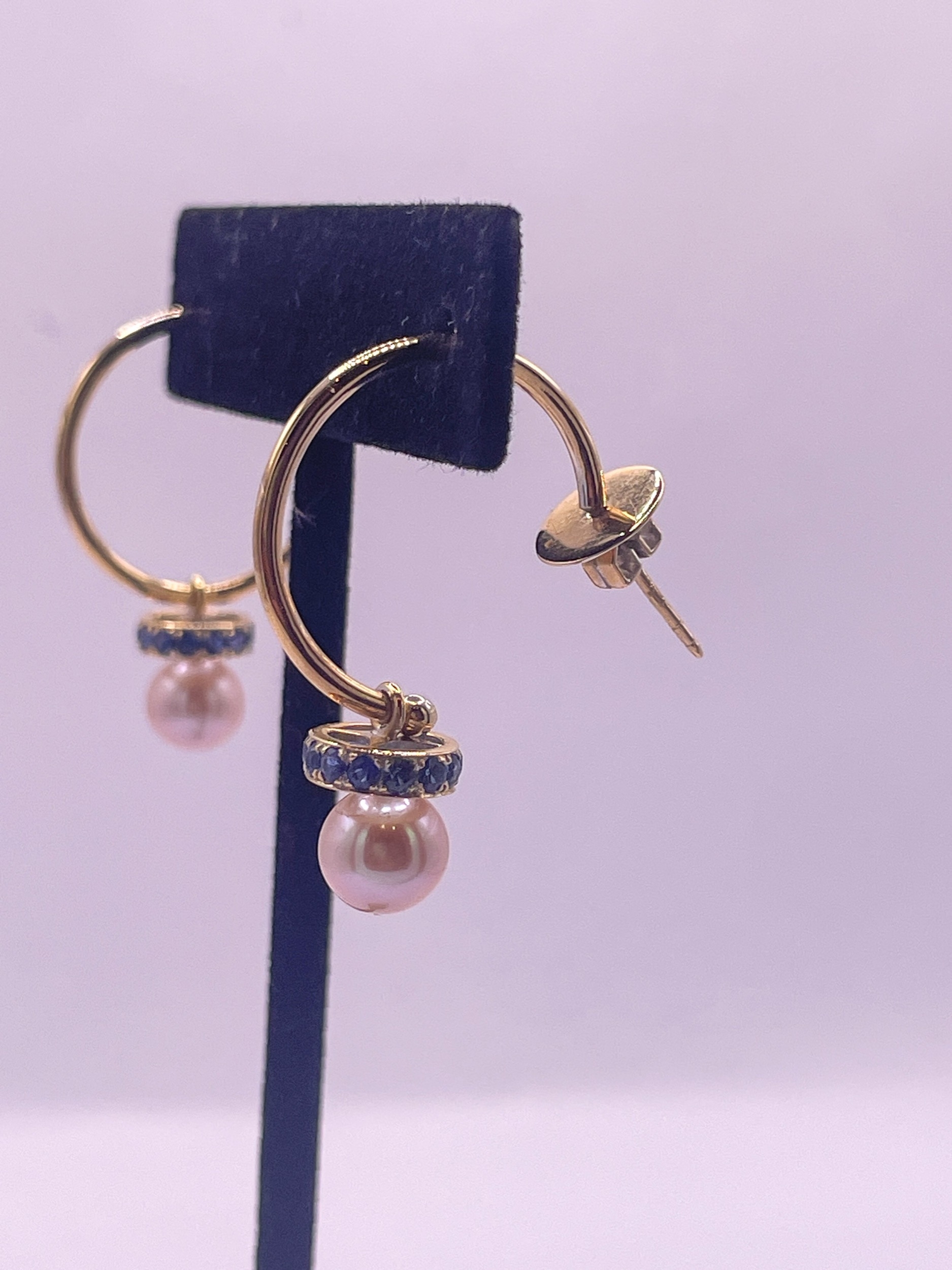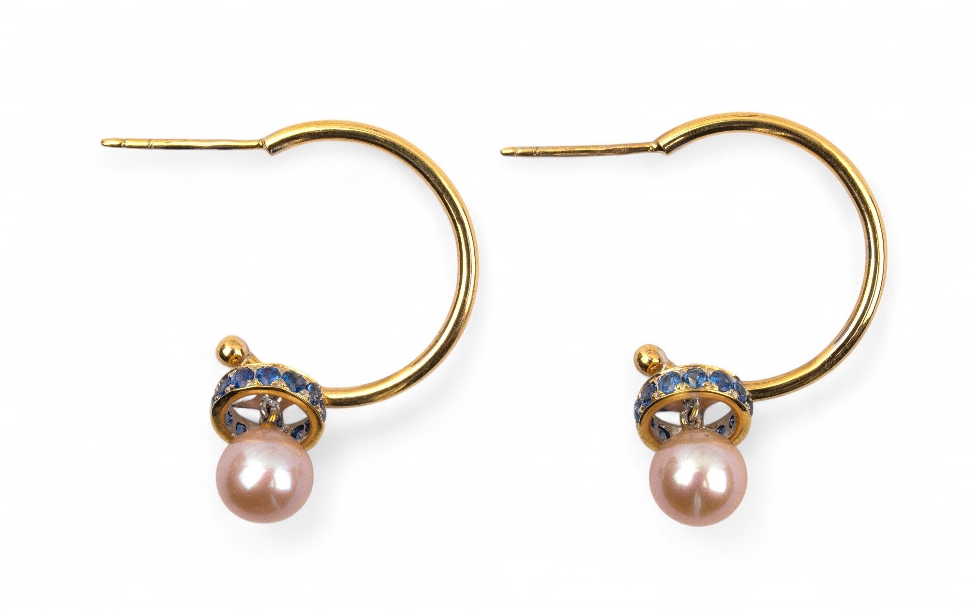 A pair of 18 carat gold, sapphire, and cultured pearl hoop earrings