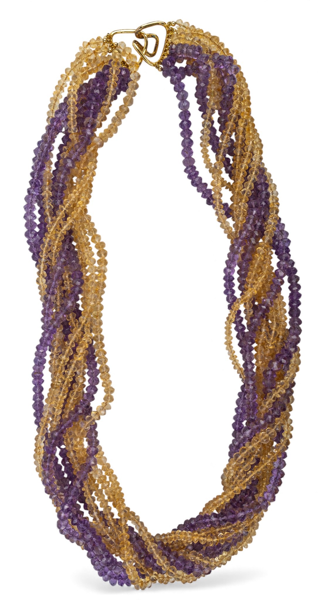 A ten-row amethyst and citrine torsade necklace