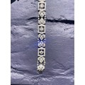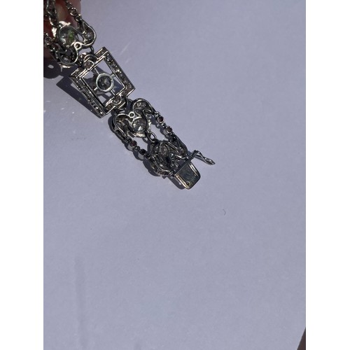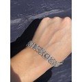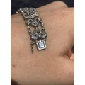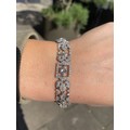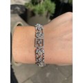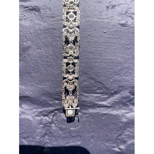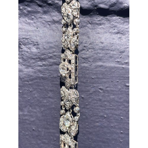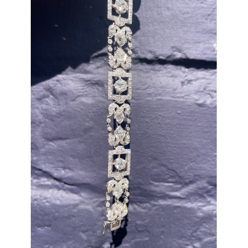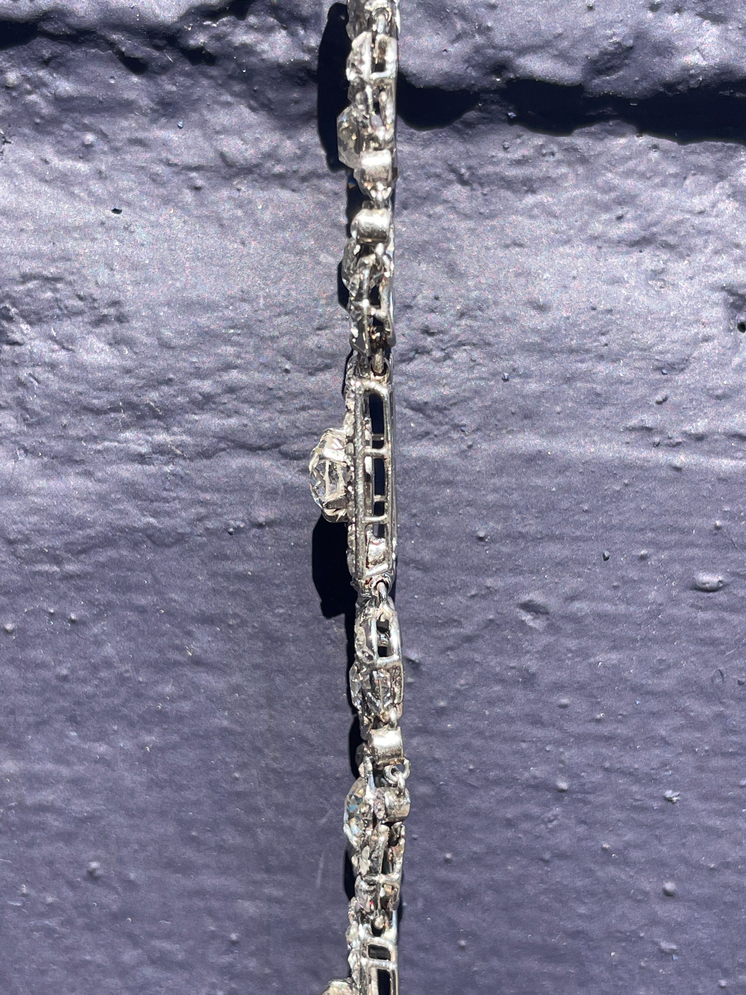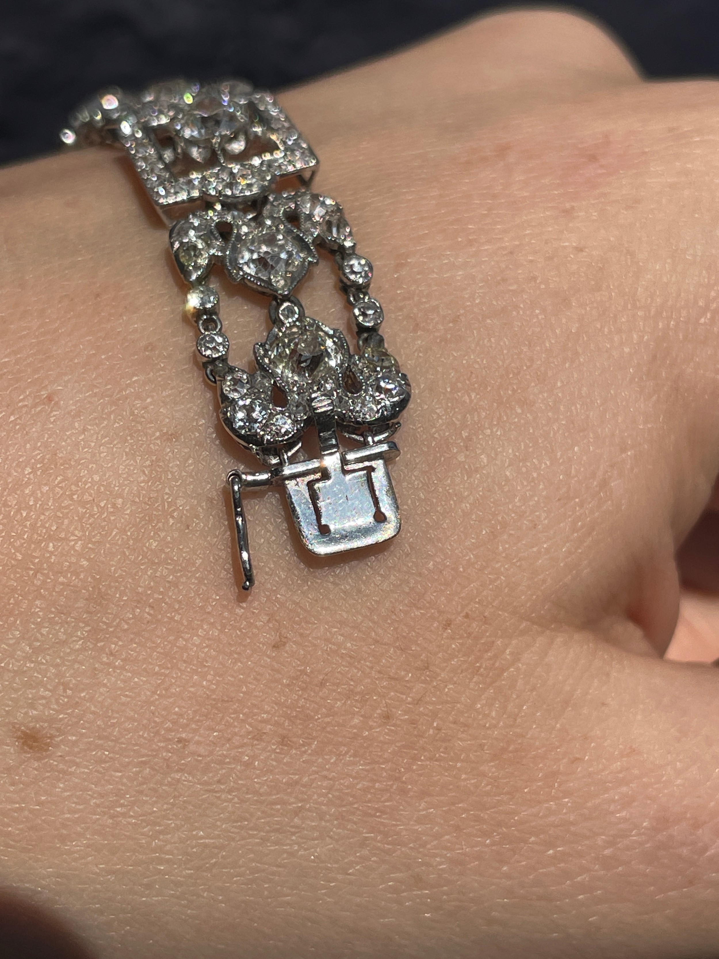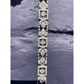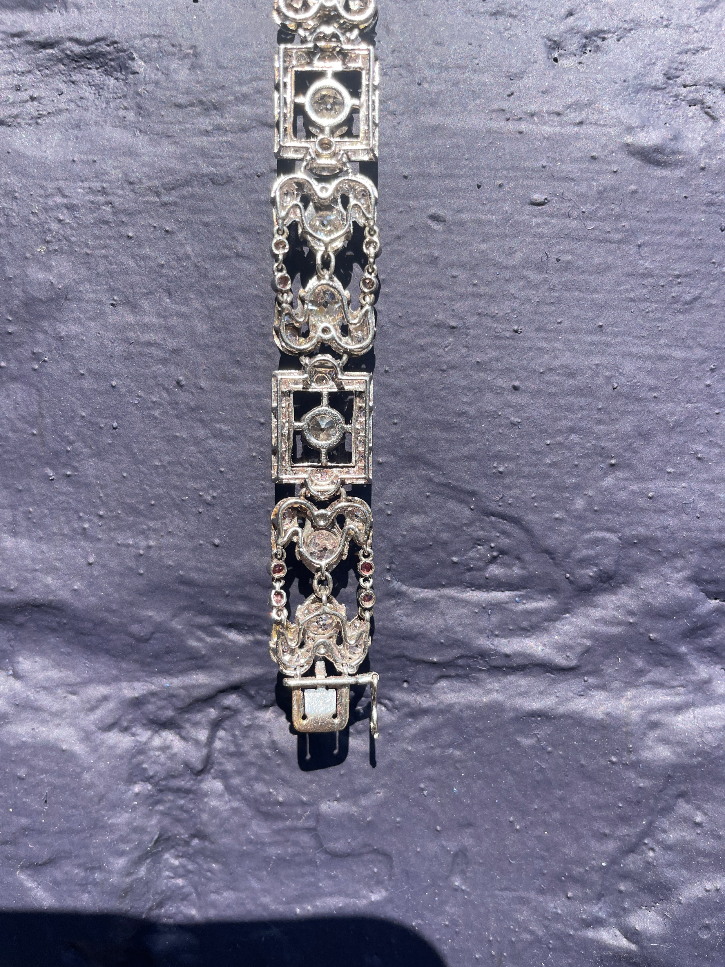 A beautiful Belle Époque diamond bracelet. Composed of square shaped sections with single old brilliant cut diamond centres. With highly flexible bell flower garland connecting links. Finely mounted in platinum, with French control marks