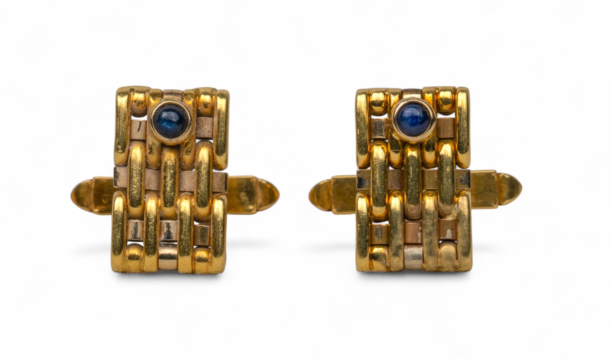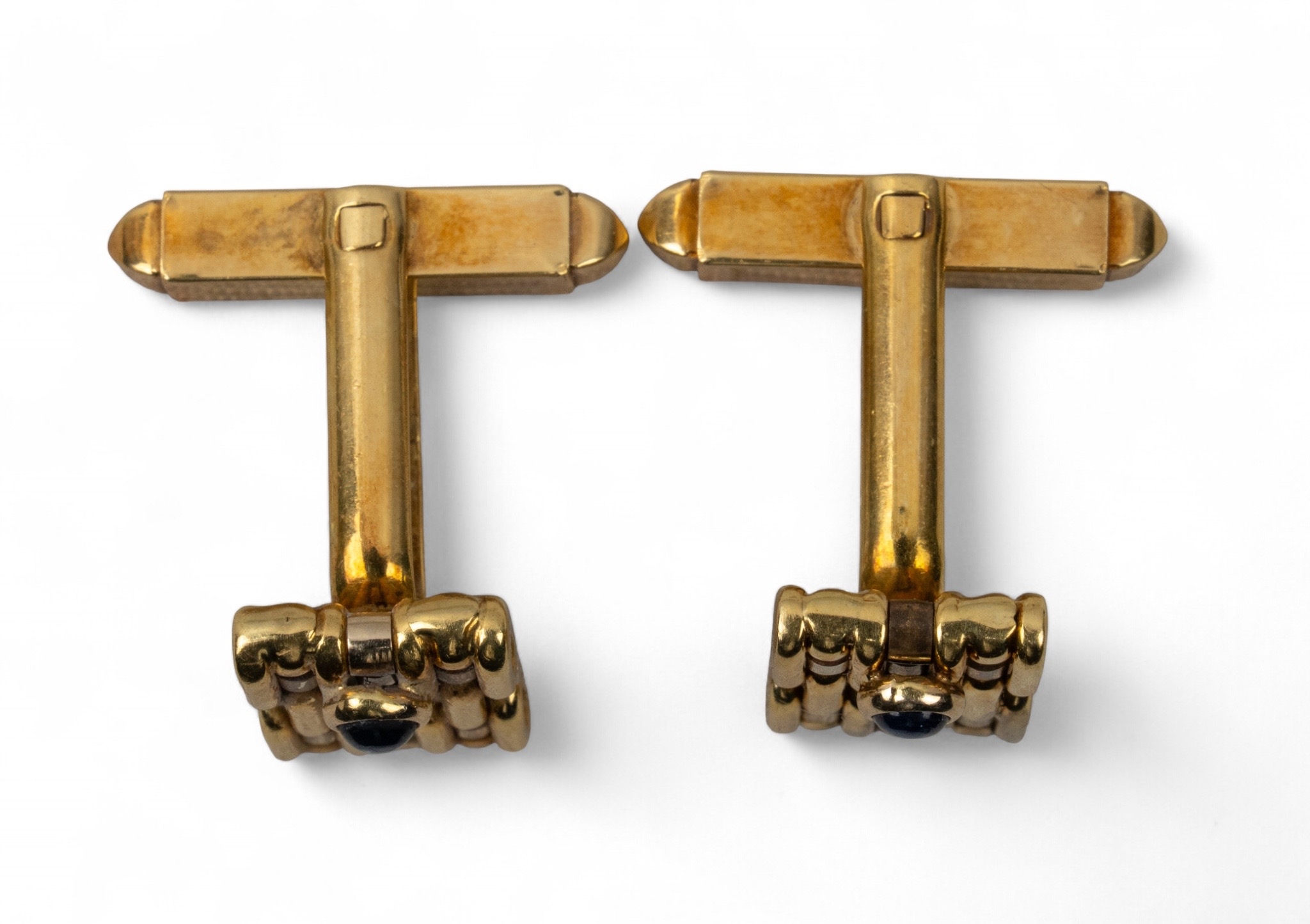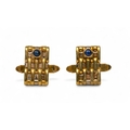 With gate link rectangular tops, with cabochon sapphire detail and bar backs.