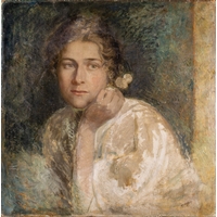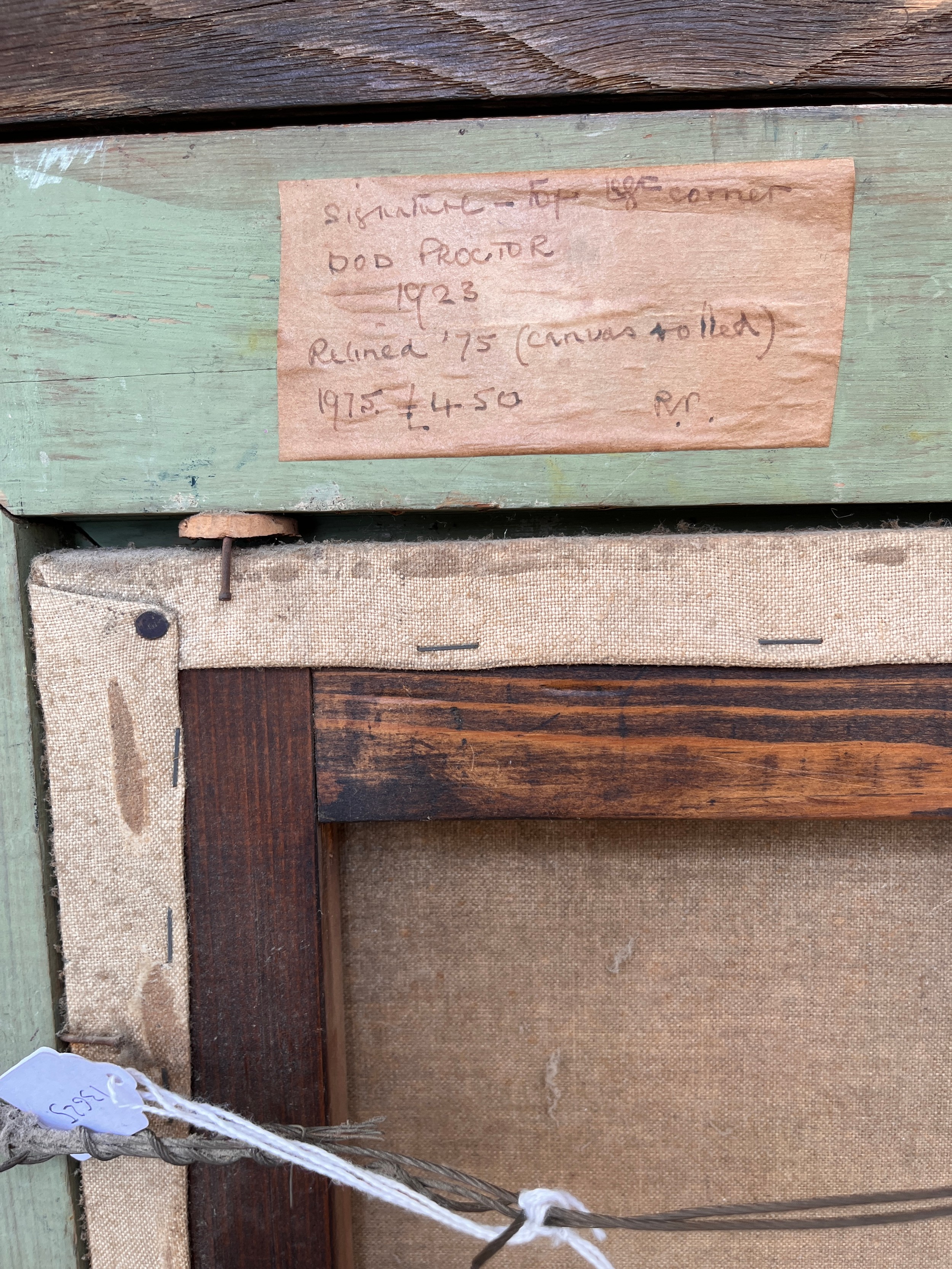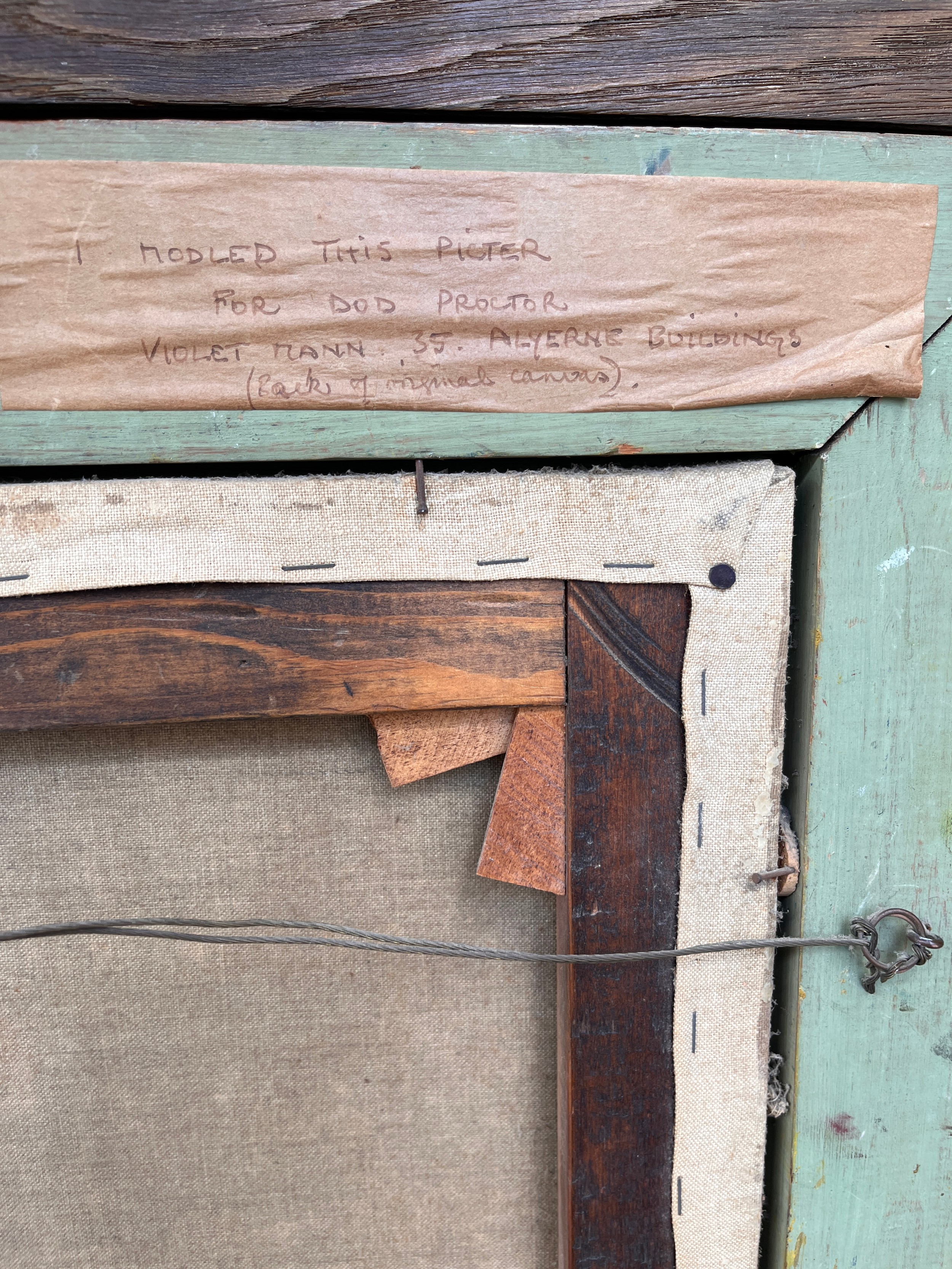 Label inscribed verso, 'Modled this picter / for Dod Proctor / Violet Mann 35 Alyerne Buildings' and, 'signature top left corner / Dod Proctor / 1923 / Relined '75 (canvas rolled) / 1975 £450'
