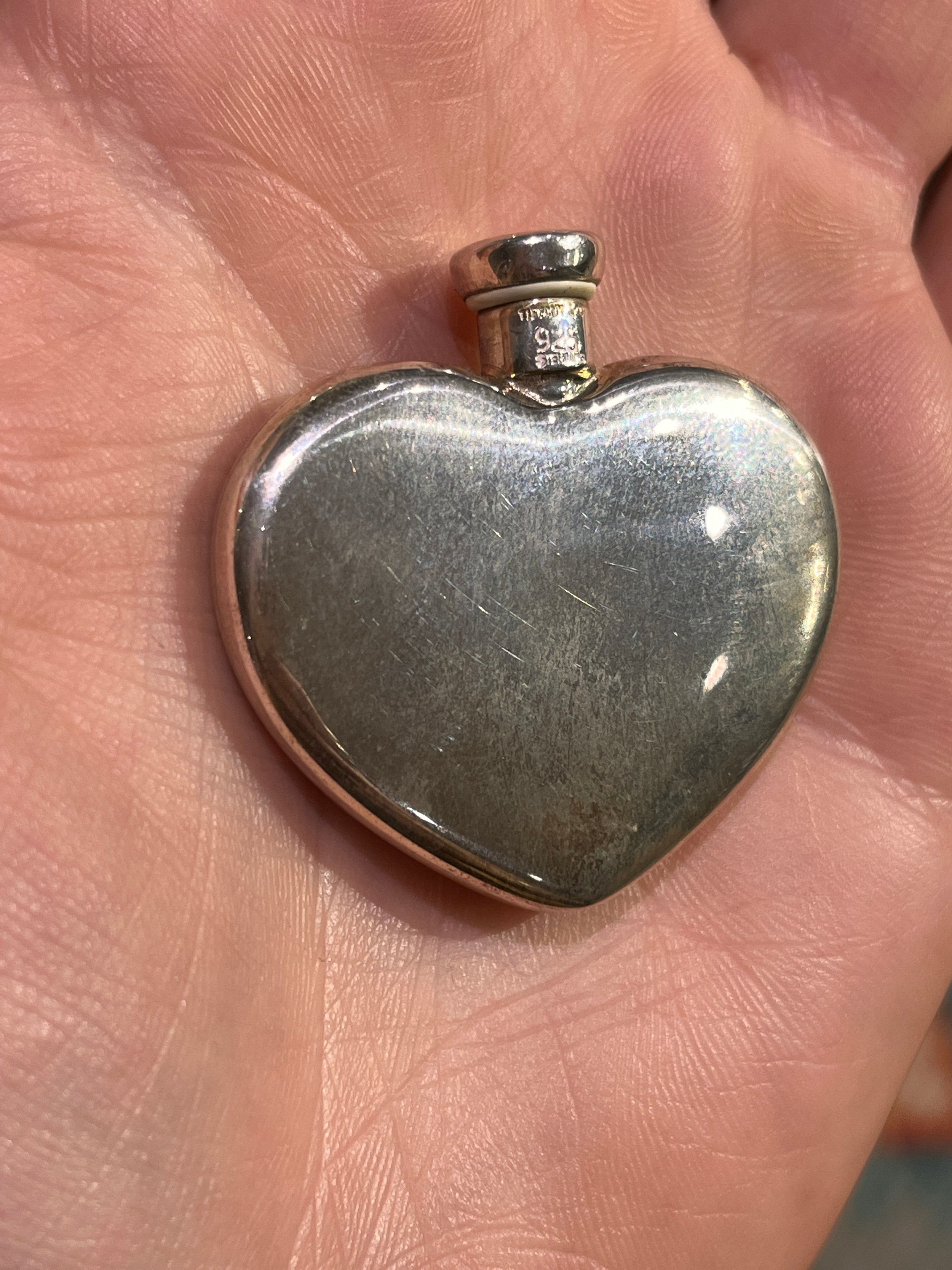 Tiffany & Co, A silver heart-shaped scent bottle and funnel
