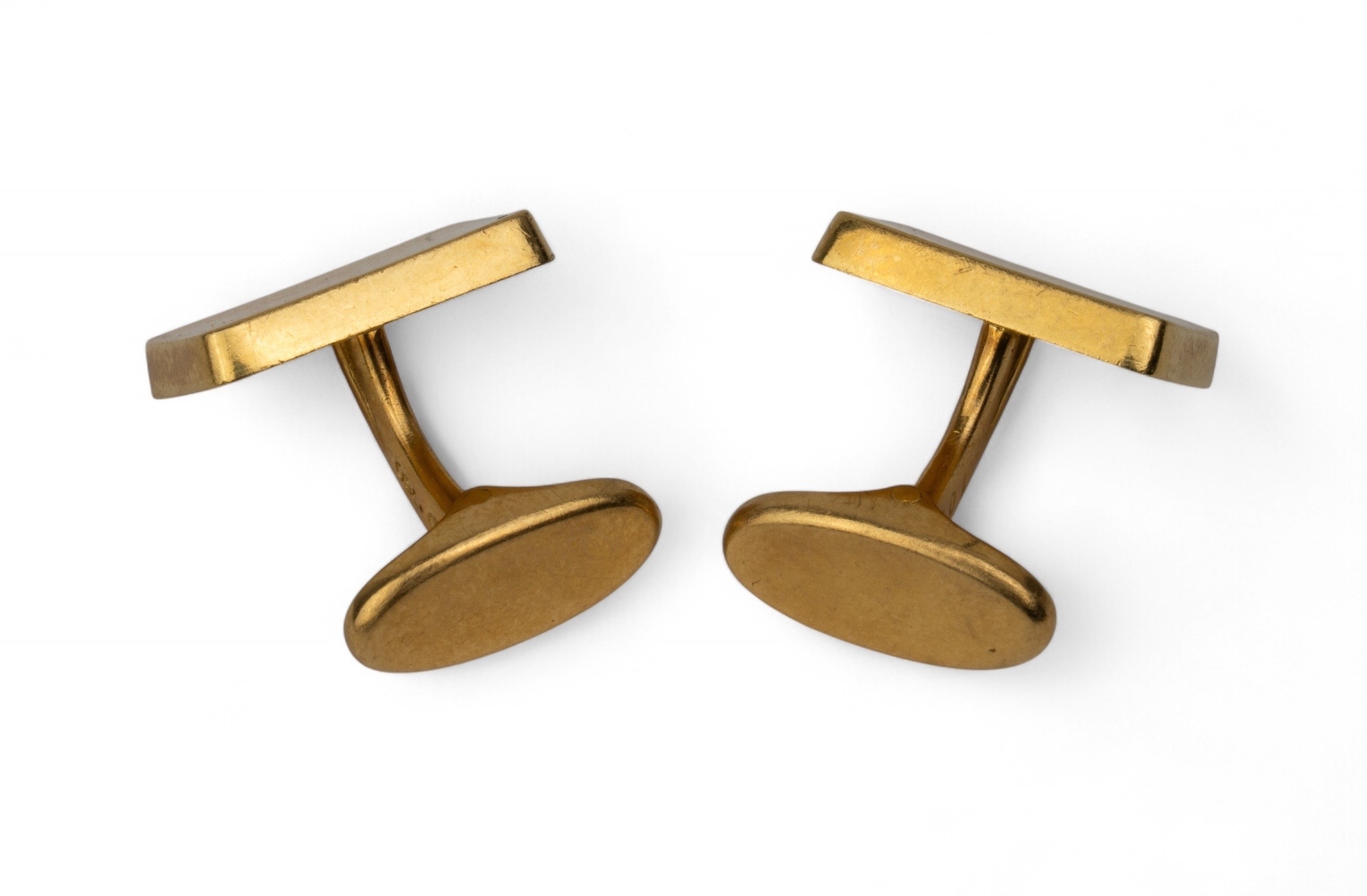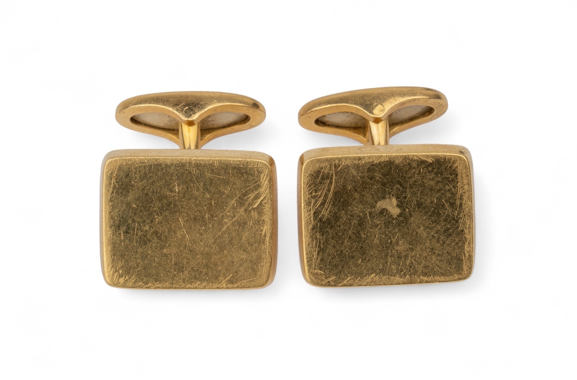 A pair of vintage 18k gold cufflinks of rectangular shape, bloomed finish, with bar backs.