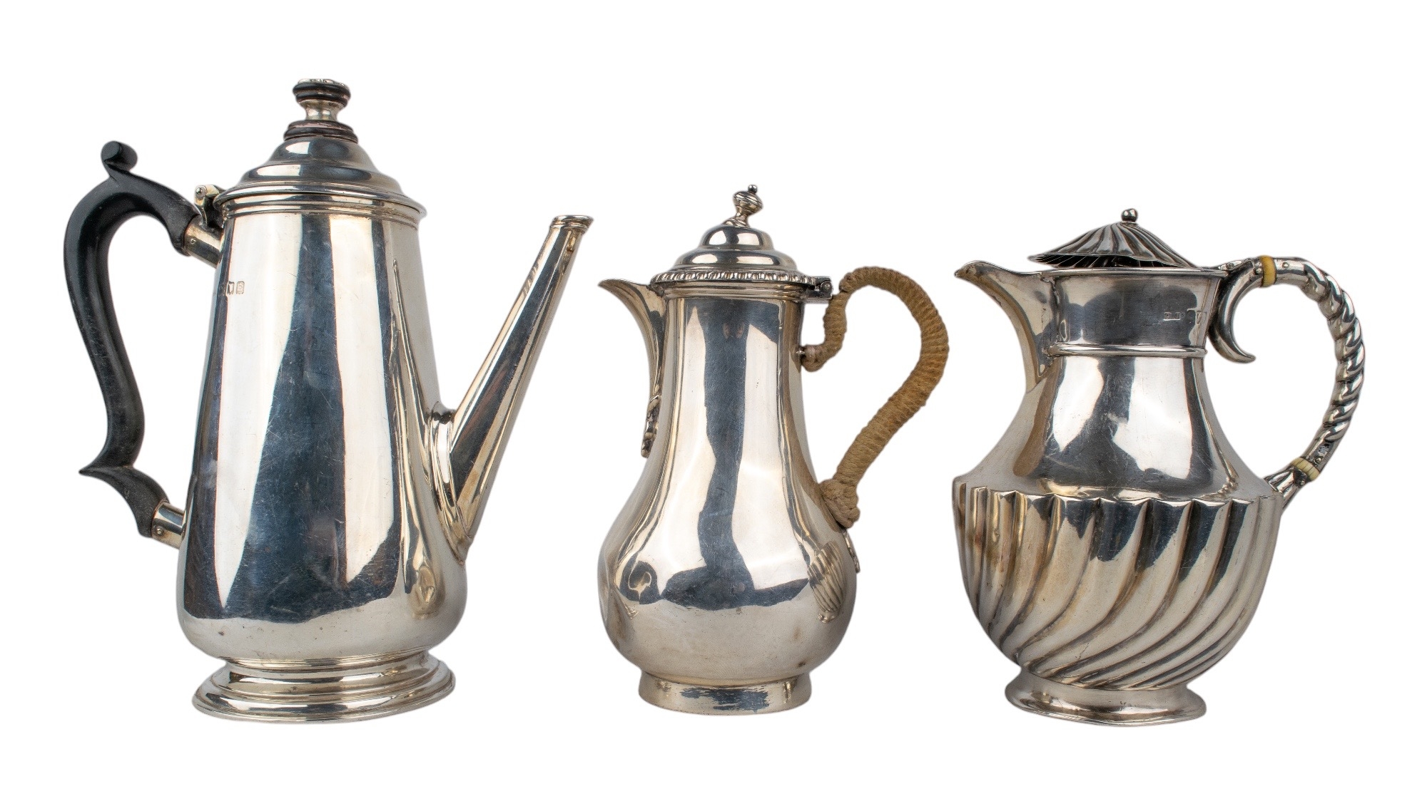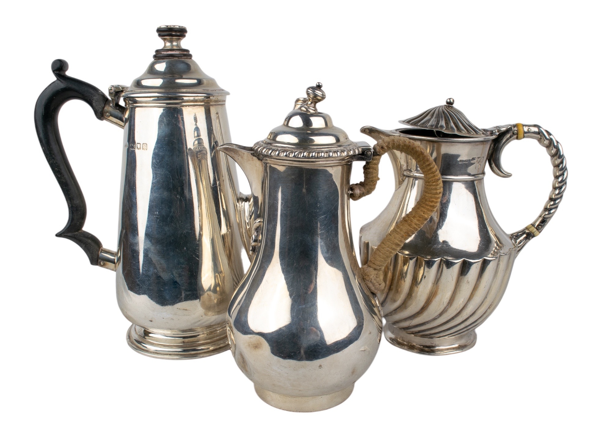 [a] A silver coffee pot. Hallmarked Sheffield 1913.