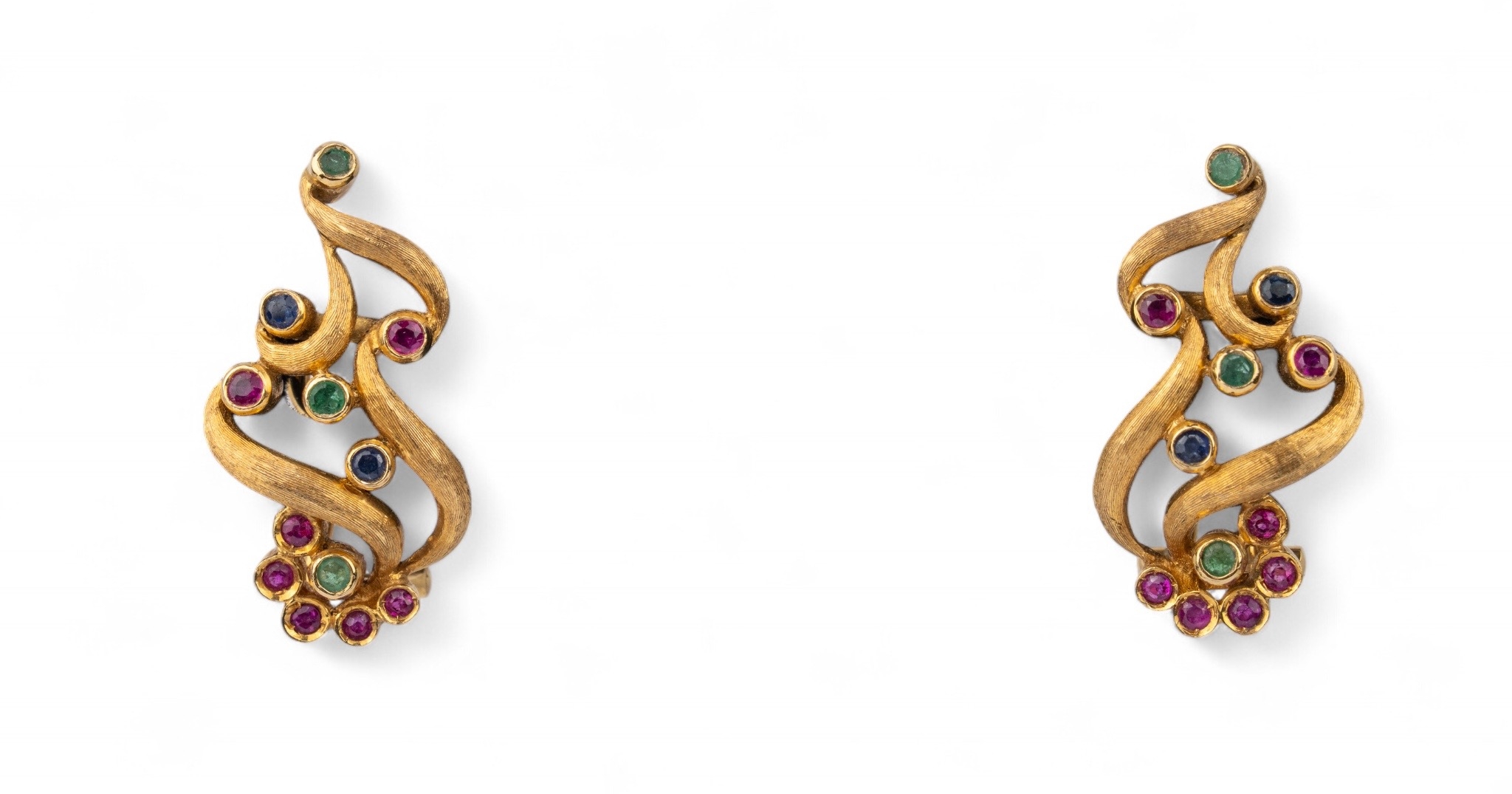 A pair of 18k gold Italian ruby and sapphire ear clips, circa 1960s
