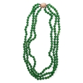 A three-row green quartzite bead necklace. With an angel-skin coral and diamond clasp.