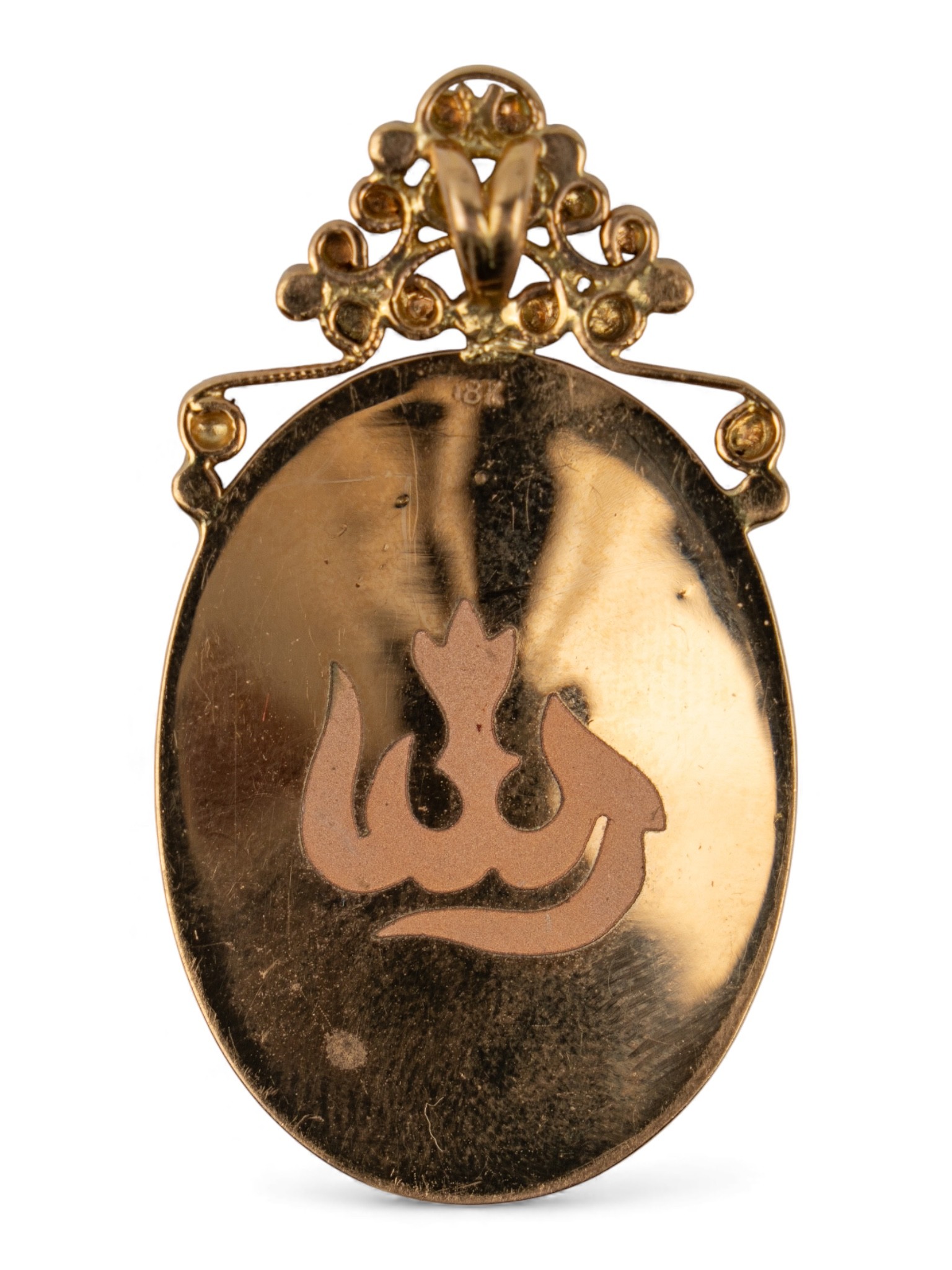 An 18 ct gold pendant with Arabic inscription