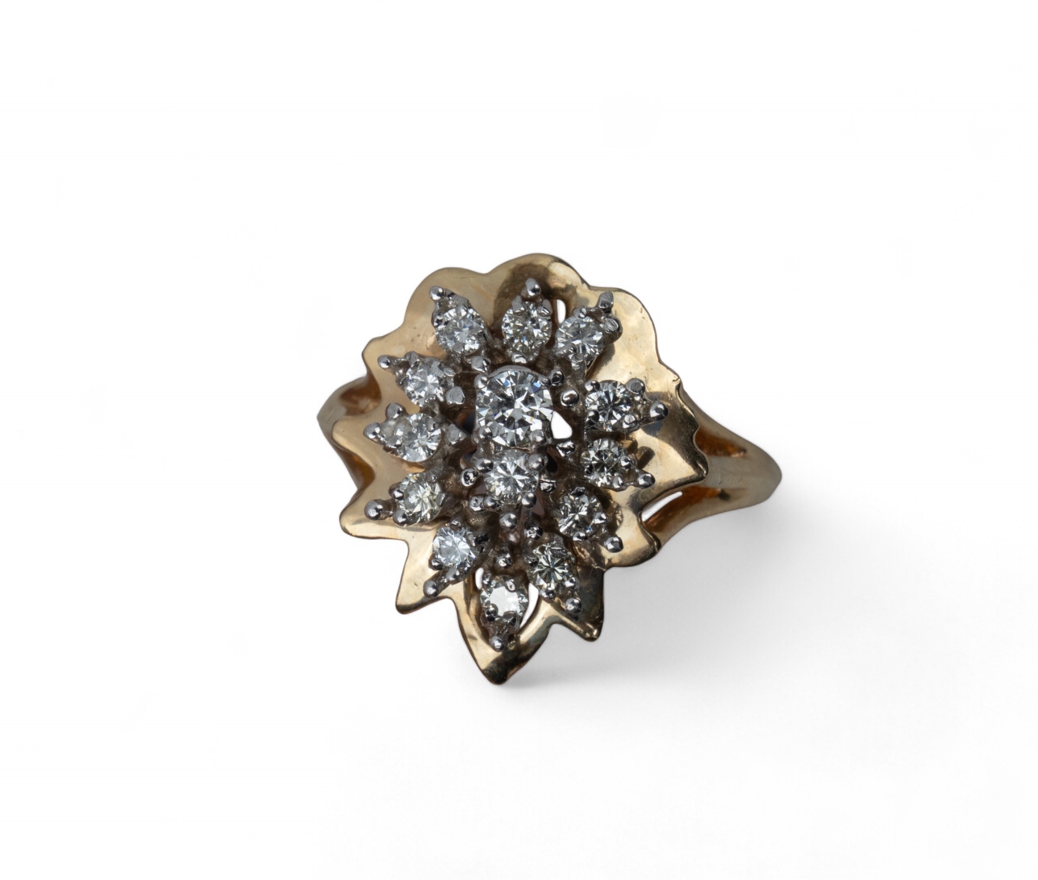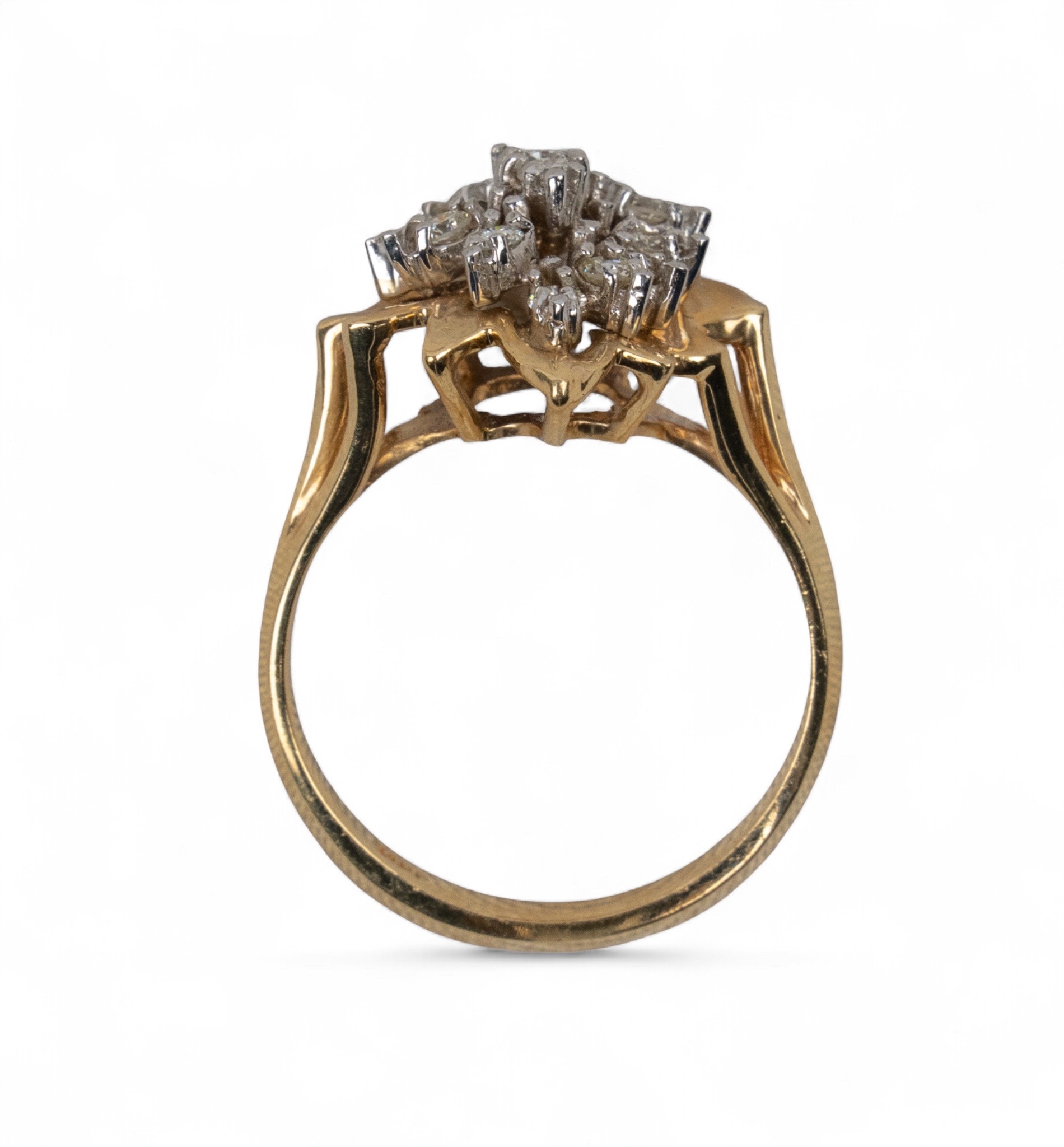 A 14 ct gold and diamond-set cluster ring